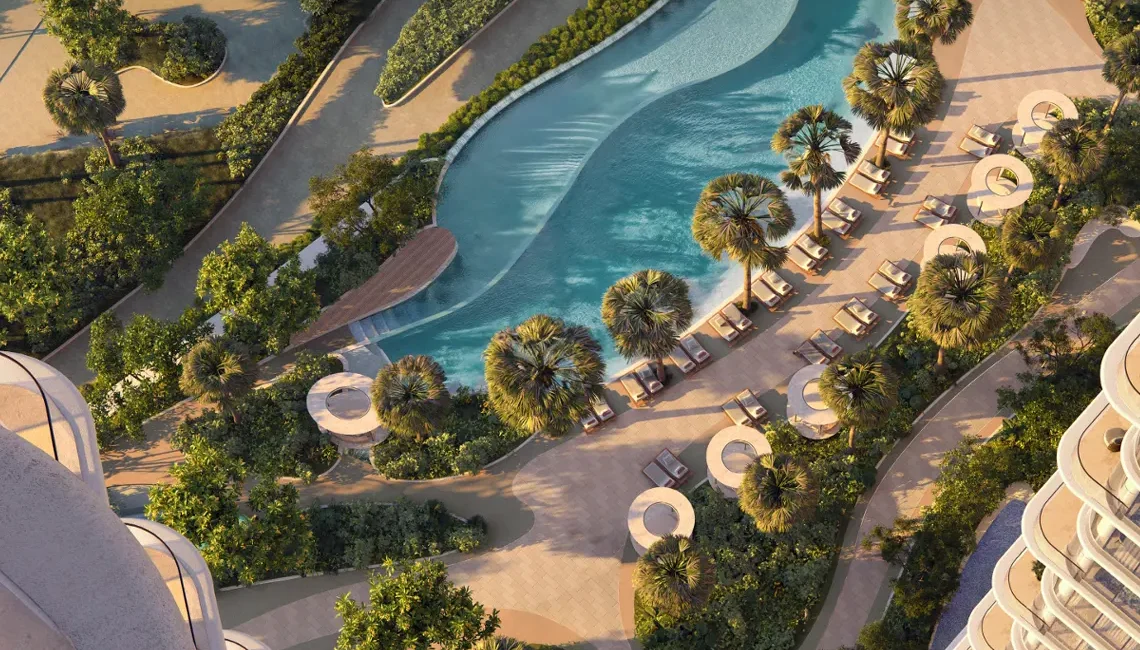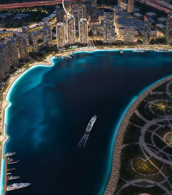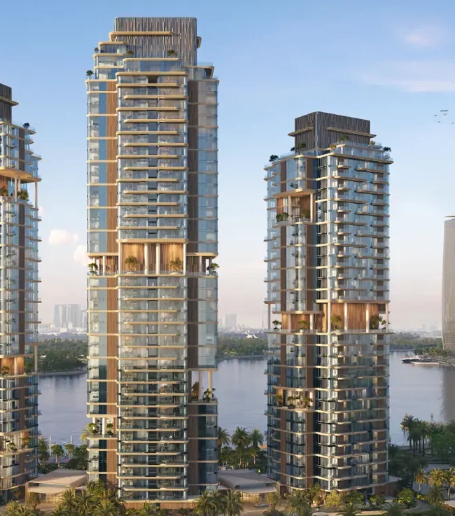 legant 1 to 4-bedroom apartments and signature penthouses with flowing layouts, expansive terraces, and double-height glass façades. Three sculptural towers redefining waterfront living with fluid forms, clean lines, and expressive architecture. Located in Dubai Design District (d3) — the region’s creative capital — minutes from Downtown Dubai and Dubai Creek. Panoramic views overlooking Dubai Creek, Ras Al Khor Wildlife Sanctuary, and the Downtown Dubai skyline. Each tower curated with a unique lifestyle theme: social & cultural living, wellness & movement, and family connection. Elevated Sky Gardens and terraced green spaces engineered for relaxation, yoga, gatherings, and serene moments. A complete wellness and leisure ecosystem featuring a high-end fitness club, spa-inspired studios, yoga zones, padel courts, and multiple resort-style pools.